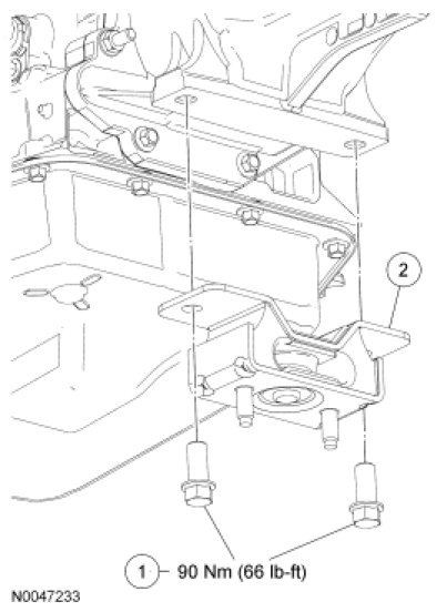 Remove the transmission support crossmember. For additional information, refer to Transmission Support Crossmember Service and Repair.