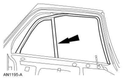1. Remove the rear door window glass. For additional information, refer to Window Glass - Rear Door Window Glass - Rear Door.