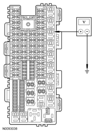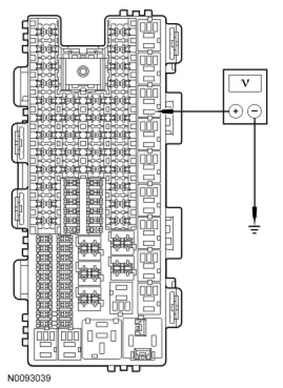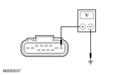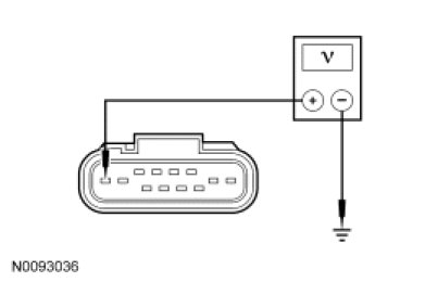 - Measure the voltage between wiper relay pin 3, circuit SBB49 (RD), harness side and ground.