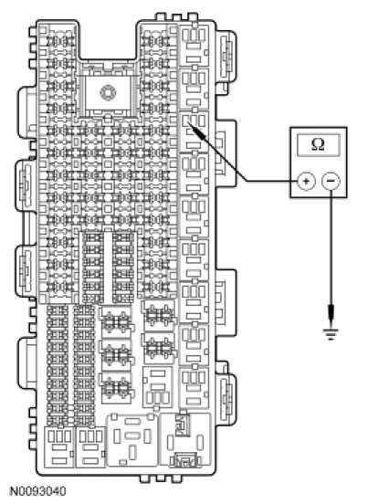 - Measure the resistance between wiper relay pin 2, circuit GD123 (BK/GY) and ground.