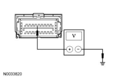 - While applying the brake pedal, measure the voltage between the PCM C1381b-18, circuit CCB08 (WH/VT), harness side and ground.