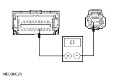 - While firmly applying and releasing the brake pedal, measure the resistance between the PCM C1381b-28, circuit CMC22 (WH/GN), harness side and the PCM C1381e-46, circuit 352 (BN/LG), harness side.