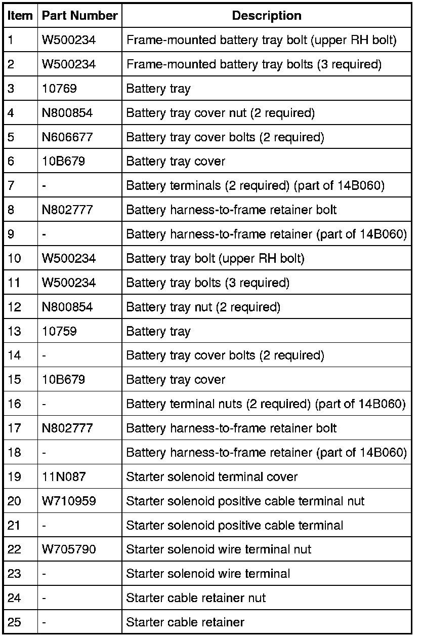 NOTE: The frame-mounted battery can be charged while the frame-mounted battery safety straps are connected to the vehicle. Follow the procedures up to and including disconnection of the frame-mounted battery cables.