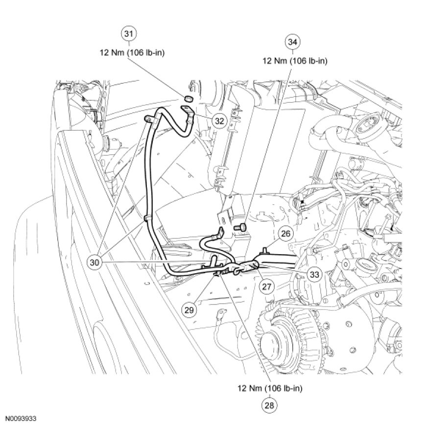24. Remove the nut and position the Battery Junction Box (BJB) terminal aside.