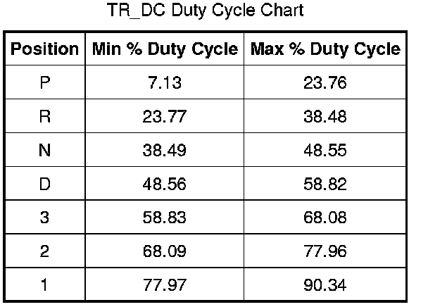 - Compare the PID: TR_DC to the TR position Duty Cycle Chart.