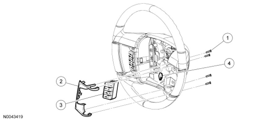 1. Remove the driver air bag module. For additional information, refer to Air Bag Systems.