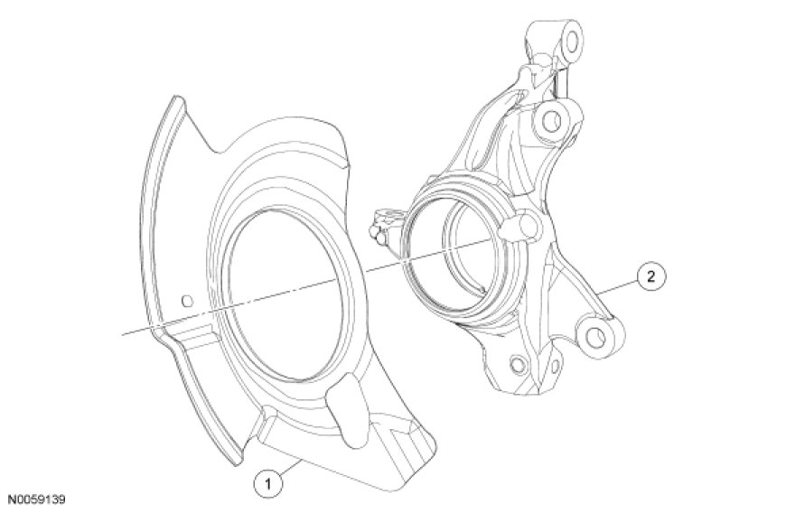 2. Index-mark the brake disc shield to the wheel knuckle, then align the new brake disc shield to the existing shield and transfer the index mark.