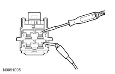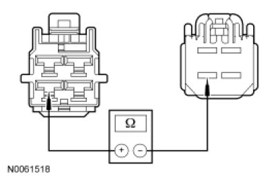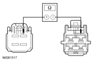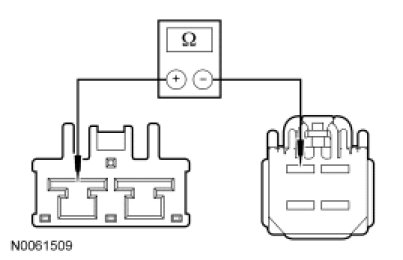 - Measure the resistance between blower motor resistor C2185-4, circuit (BK/RD), harness side and blower motor C288-1, circuit (BK/RD), harness side.