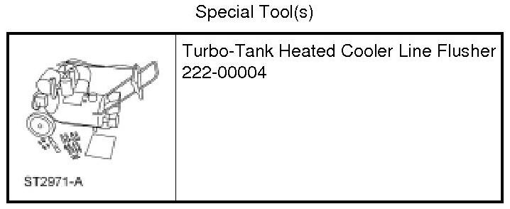 NOTE: Transmission fluid cooler backflushing will be carried out using the Turbo-Tank Heated Cooler Line Flusher. Follow the manufacturer's instructions included with the machine. Test the equipment to make sure that a vigorous fluid flow is present before proceeding.