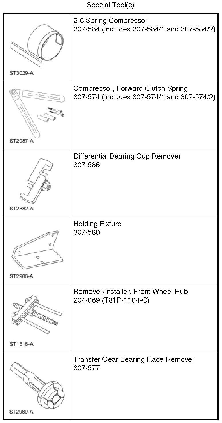 40. NOTE: The 2-6 Spring Compressor 307-584 (307-584/1 and 307-584/2) and the Forward Clutch Spring Compressor 307-574 (307-574/1 and 307-574/2) are not shown for clarity.