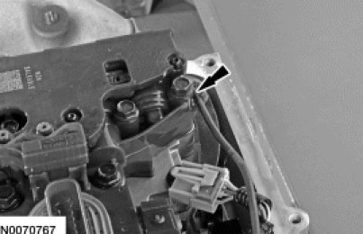 6. Slide the Transmission Range (TR) sensor electrical connector lock tab over to unlock the connector.