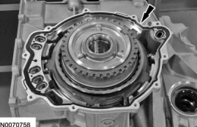 25. NOTE: The location of the tab on the bottom pressure plate is aligned with the gap for the low One-Way Clutch (OWC) snap ring.