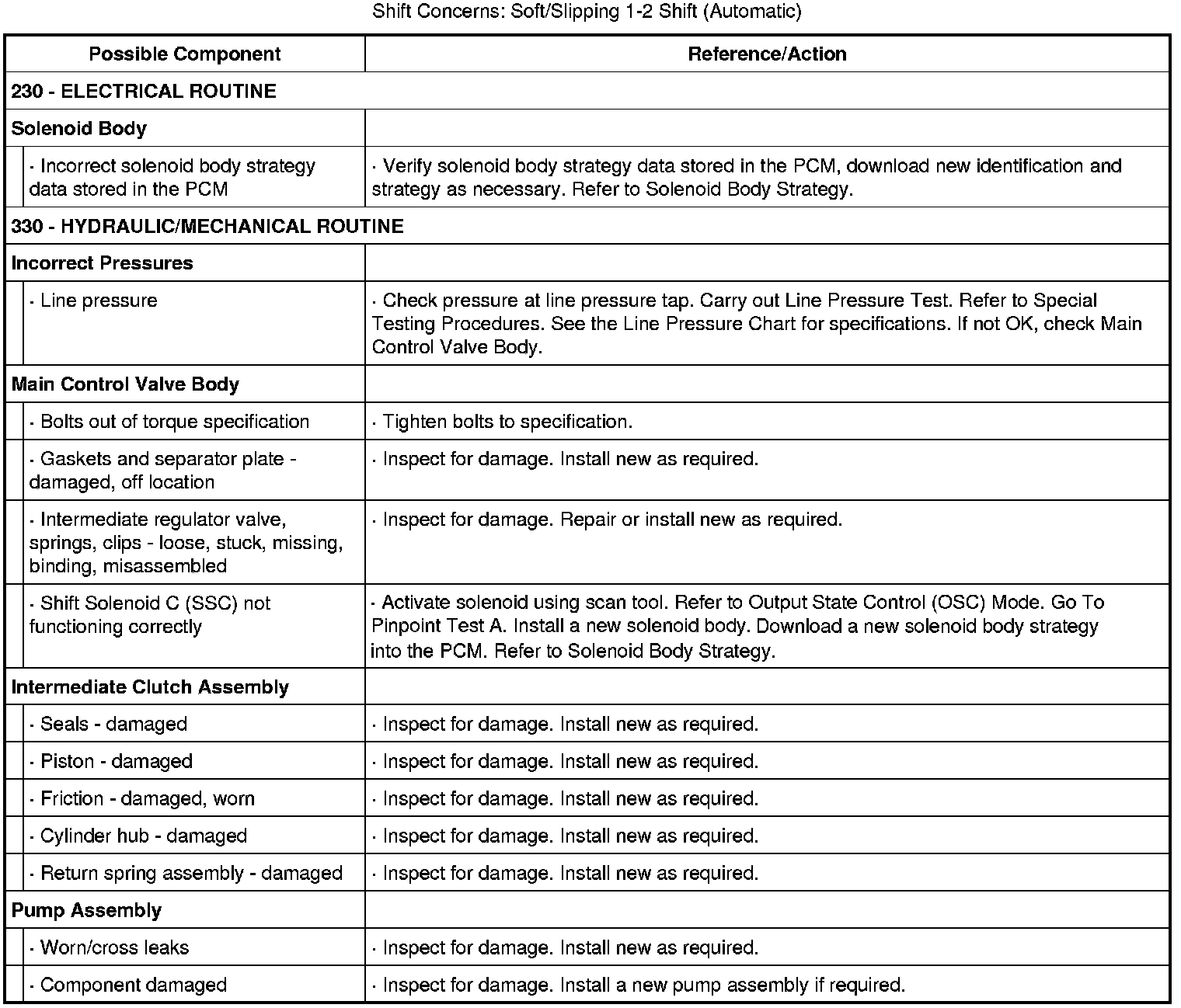 230/330, Soft/Slipping 1-2 Shift (Automatic):