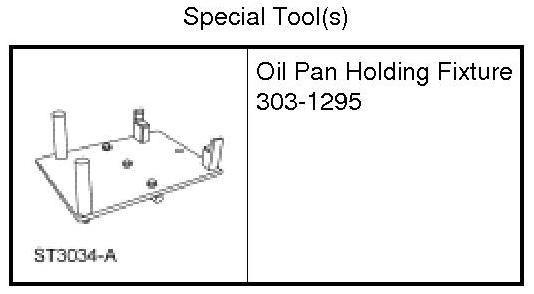 15. NOTICE: The Oil Pan Holding Fixture must be carefully aligned to the mounting bosses on the oil pan. Failure to follow these instructions may result in damage to the oil pan.