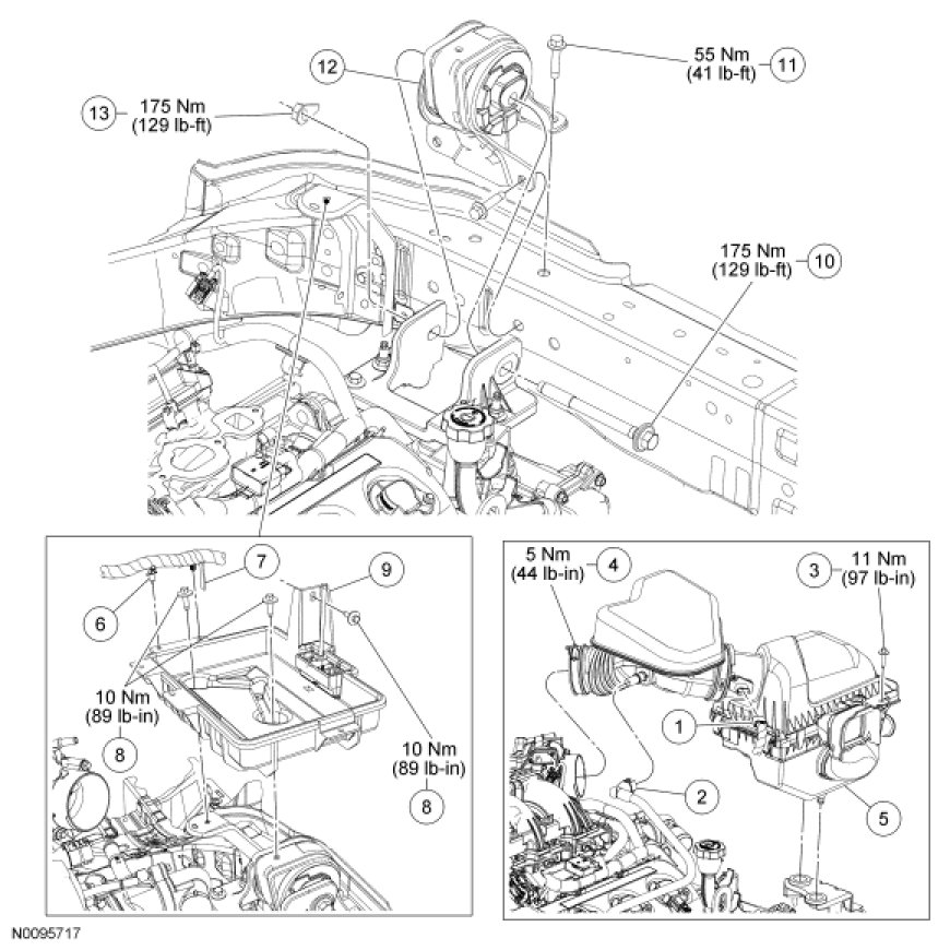 - Tighten the transaxle support insulator bracket nuts to 63 Nm (46 lb-ft).