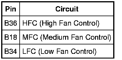 Although the PCM output circuits are called low, medium, and high fan control (FC), cooling fan operation is controlled by a combination of these outputs.