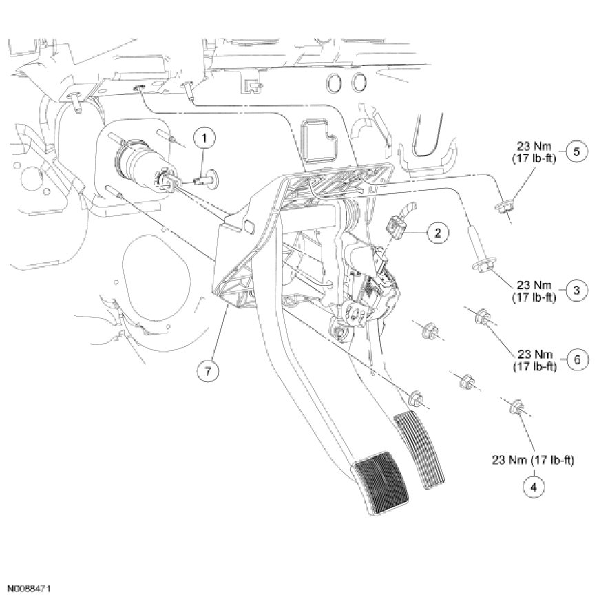 1. NOTICE: Do not service the brake pedal or brake booster without first removing the stoplamp switch and speed control deactivator switch. These switches must be removed with the brake pedal in the at-rest position. Switch plungers must be compressed for the switch to rotate in the bracket. Attempting to remove the switch when the plunger is extended (during pedal apply) will result in damage to the switch.