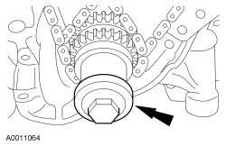 66. Rotate the crankshaft clockwise 120 degrees to the 3 o'clock position to position the RH camshafts in the neutral position.