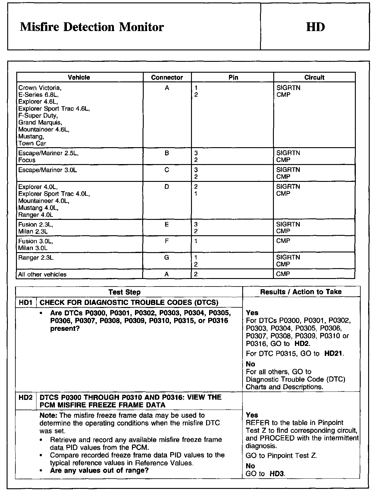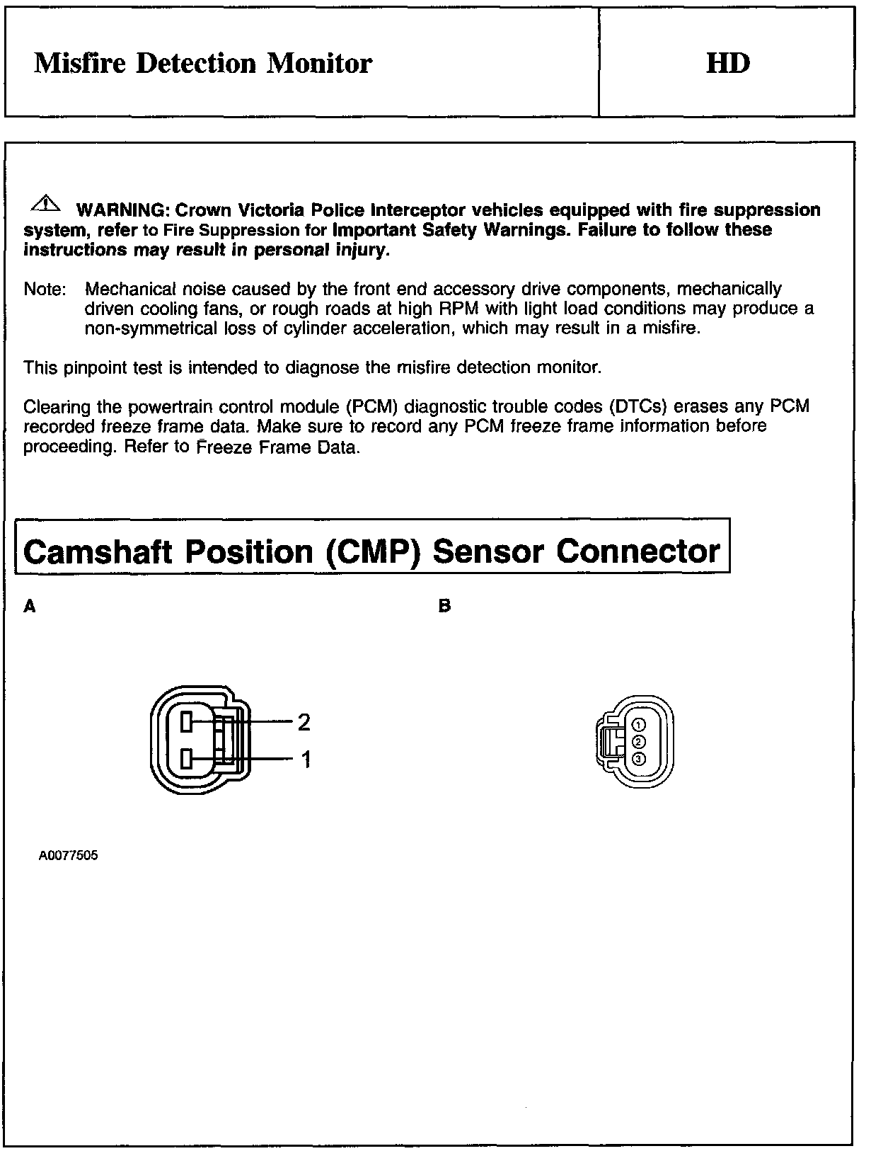 PINPOINT TEST HD: MISFIRE DETECTION MONITORWARNING And Camshaft Position Sensor Connector: