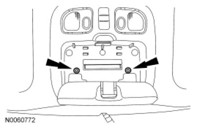3. Open the front overhead console door, remove the 2 screws and the overhead console.