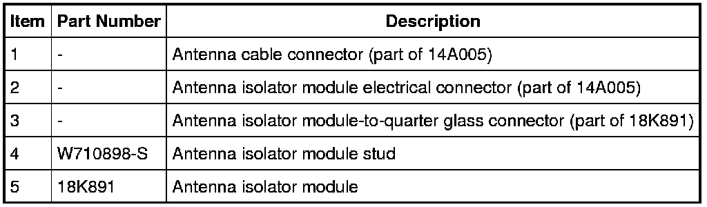 antenna cable connector, the antenna isolator module electrical connector, and the antenna isolator module-to-quarter glass connector.