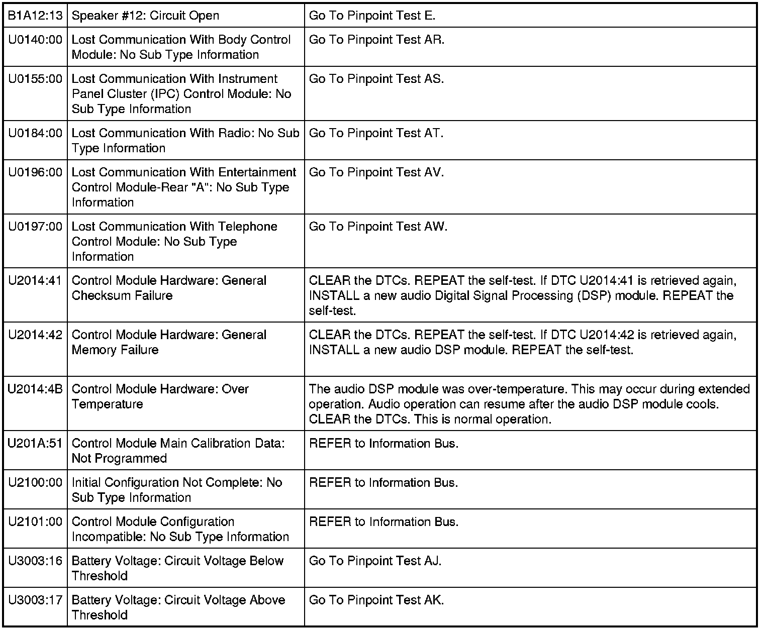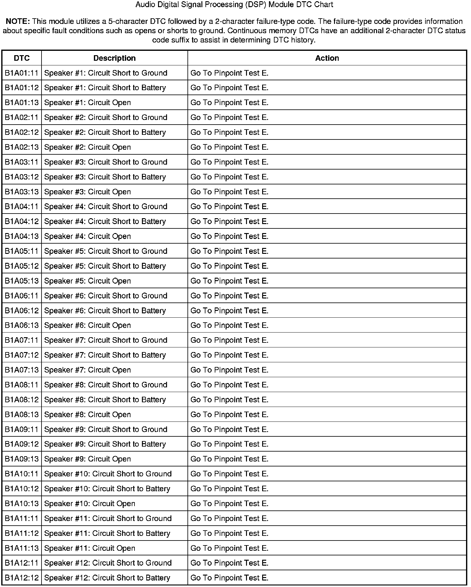 Audio Digital Signal Processing (DSP) Module DTC Chart
