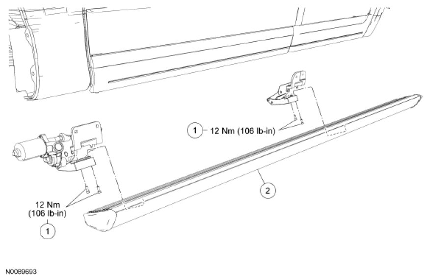 2. NOTICE: An assistant is required to hold the Power Running Board (PRB) before removing the bracket-to-step screws.