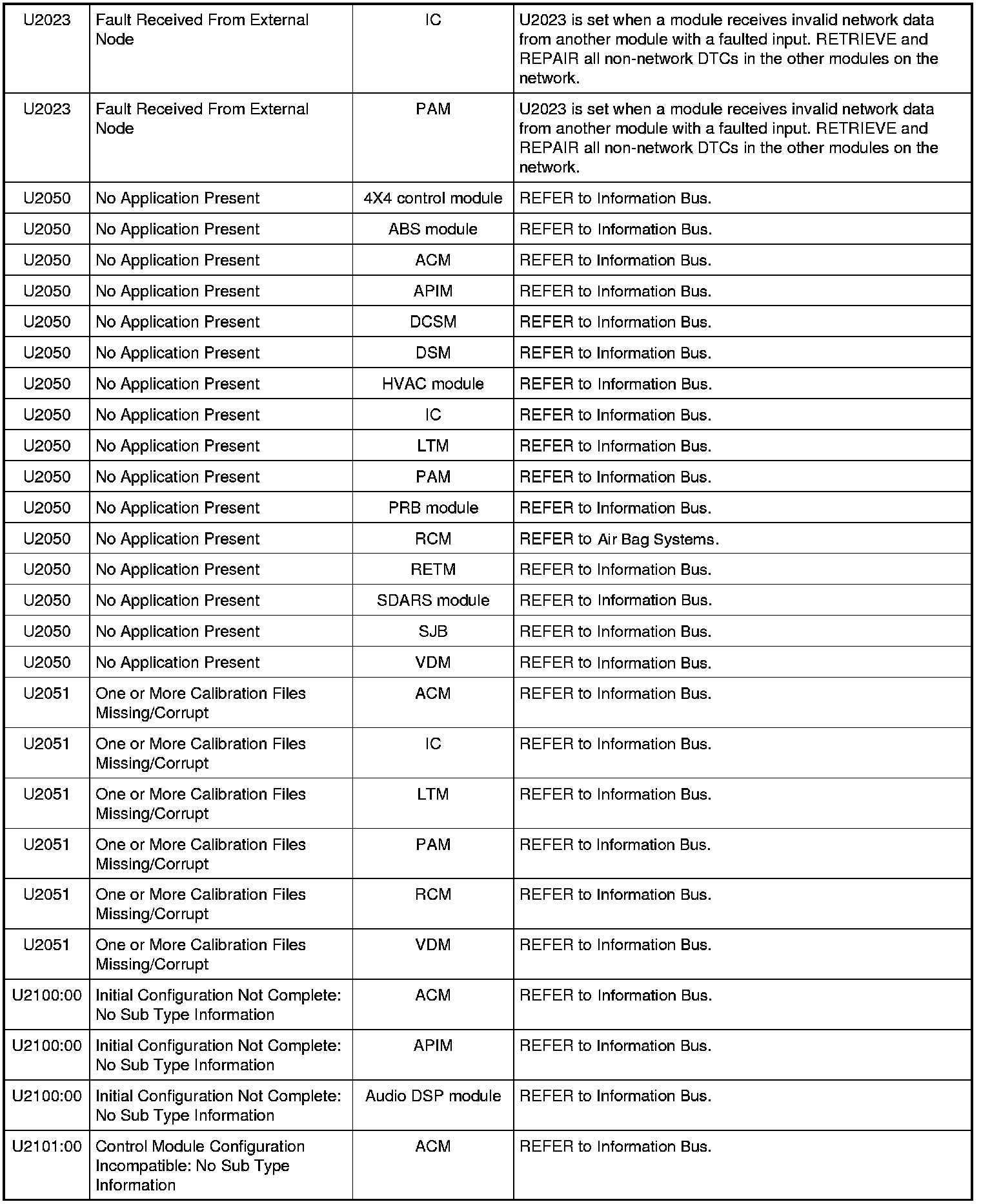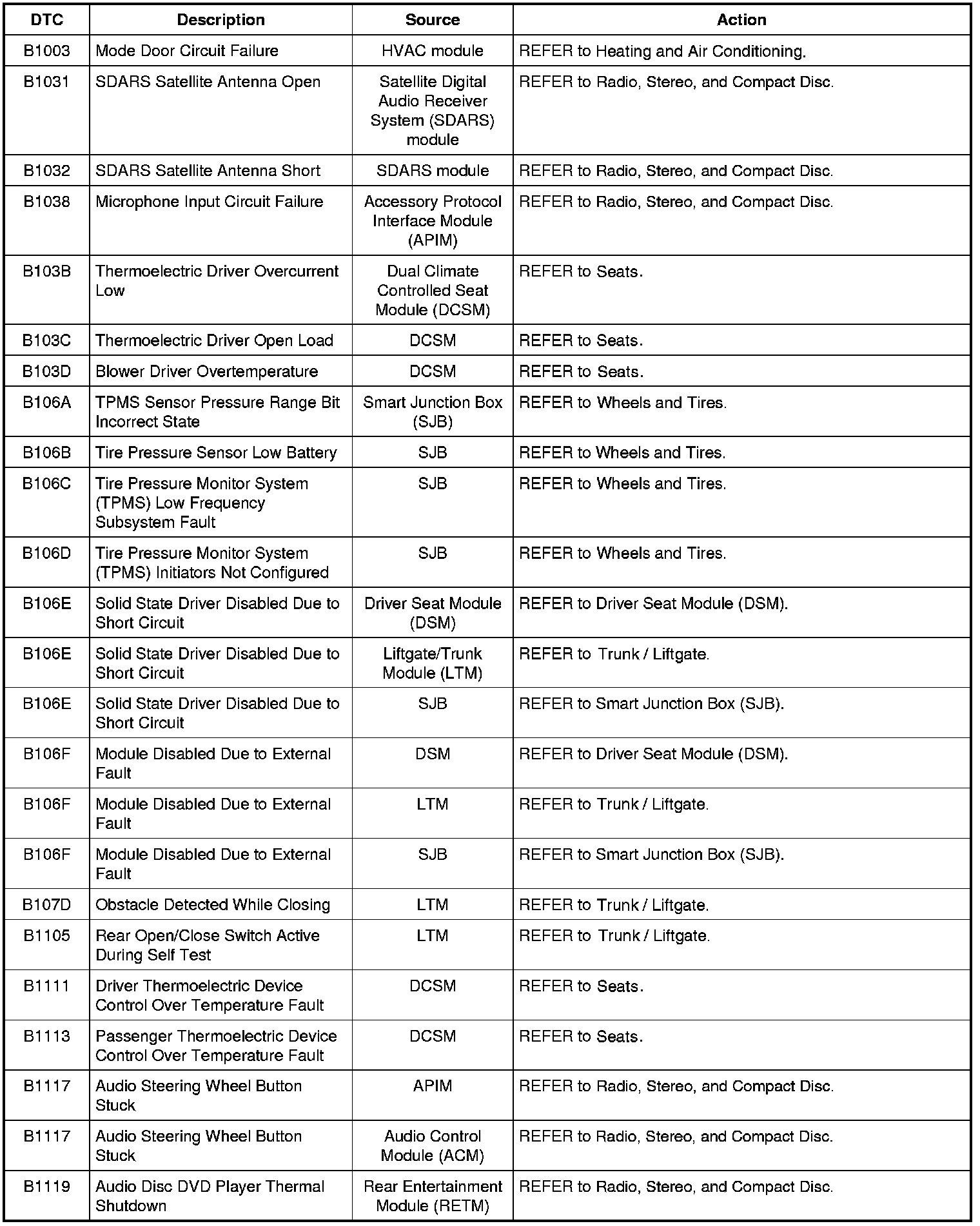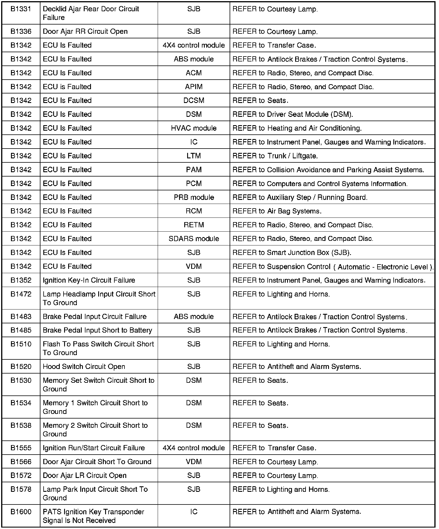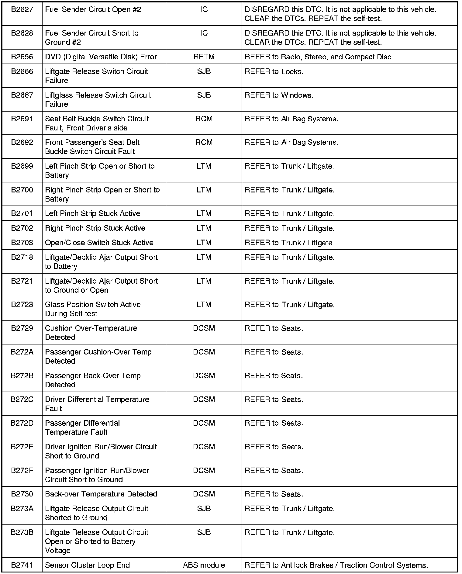 Diagnostic Trouble Code (DTC) ChartNOTE: Most powertrain (P-code) DTCs are diagnosed in Computers and Control Systems Information. If the P-code retrieved is not listed below, refer to Computers and Control Systems Information to continue diagnostics.