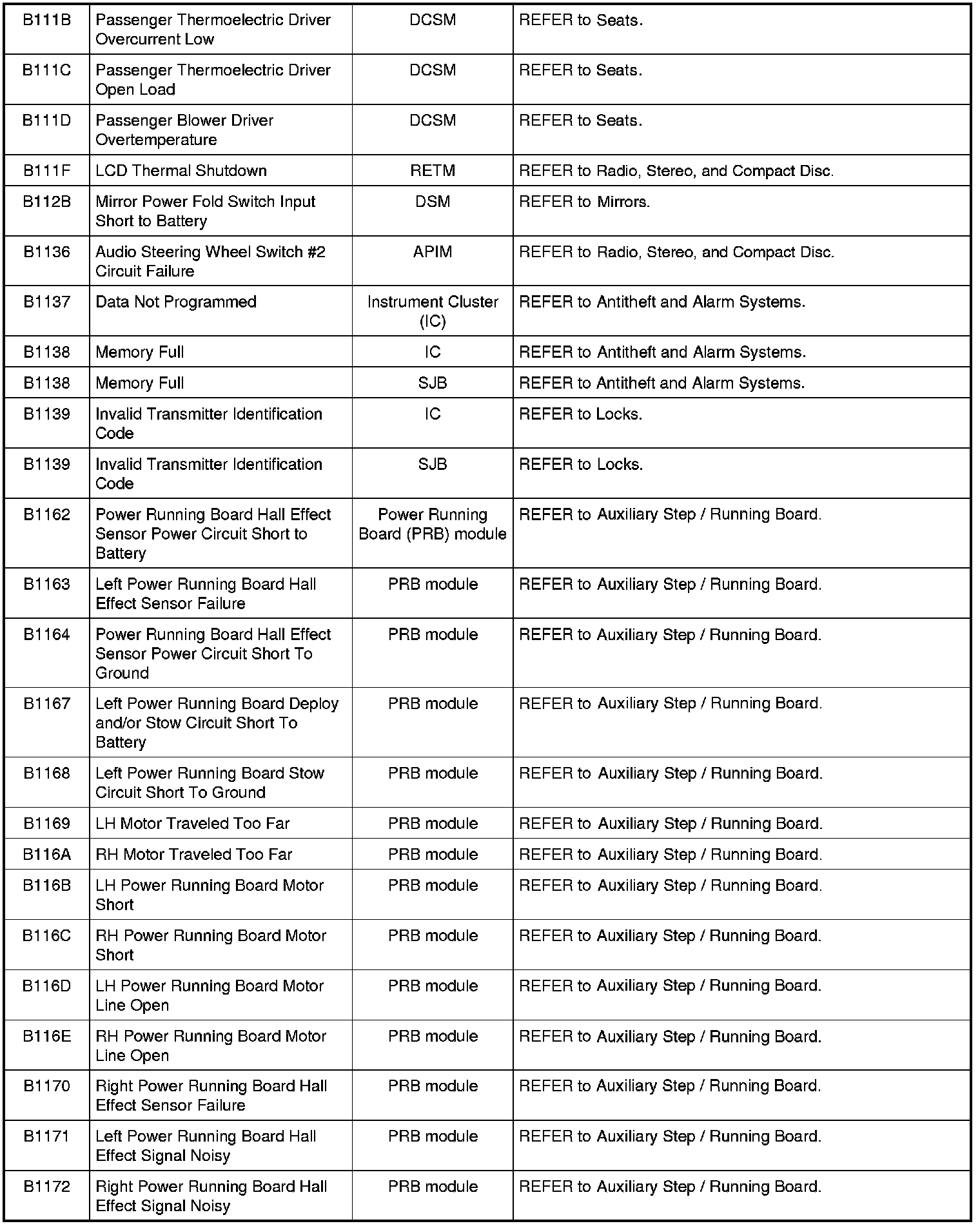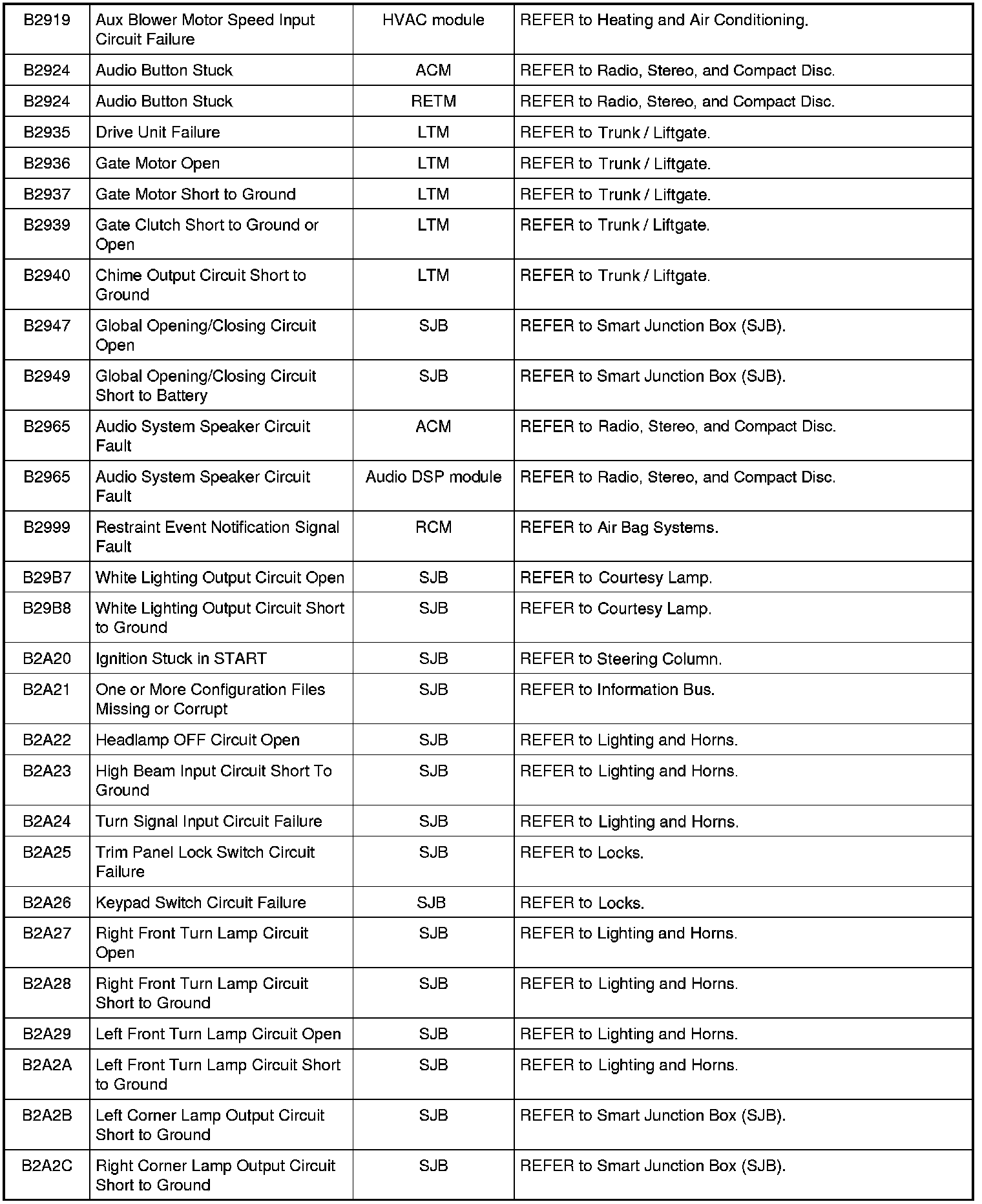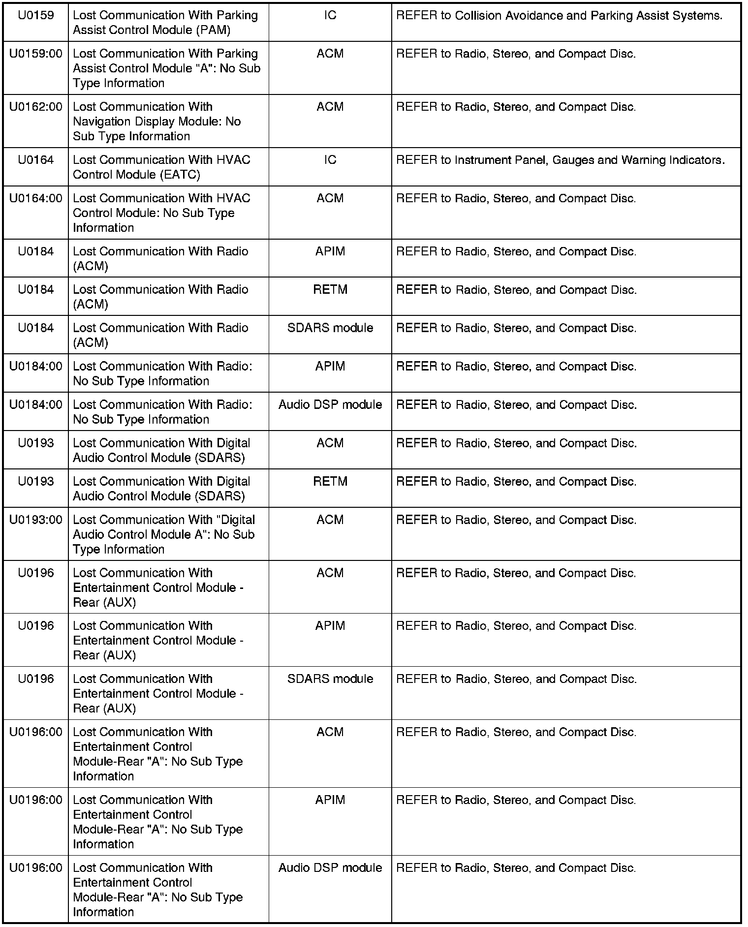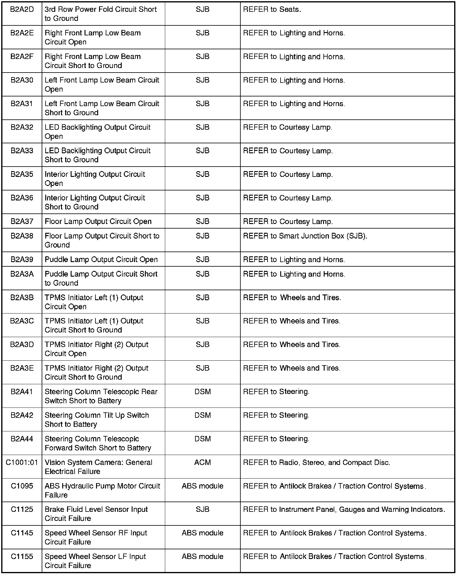 Diagnostic Trouble Code (DTC) ChartNOTE: Most powertrain (P-code) DTCs are diagnosed in Computers and Control Systems Information. If the P-code retrieved is not listed below, refer to Computers and Control Systems Information to continue diagnostics.
