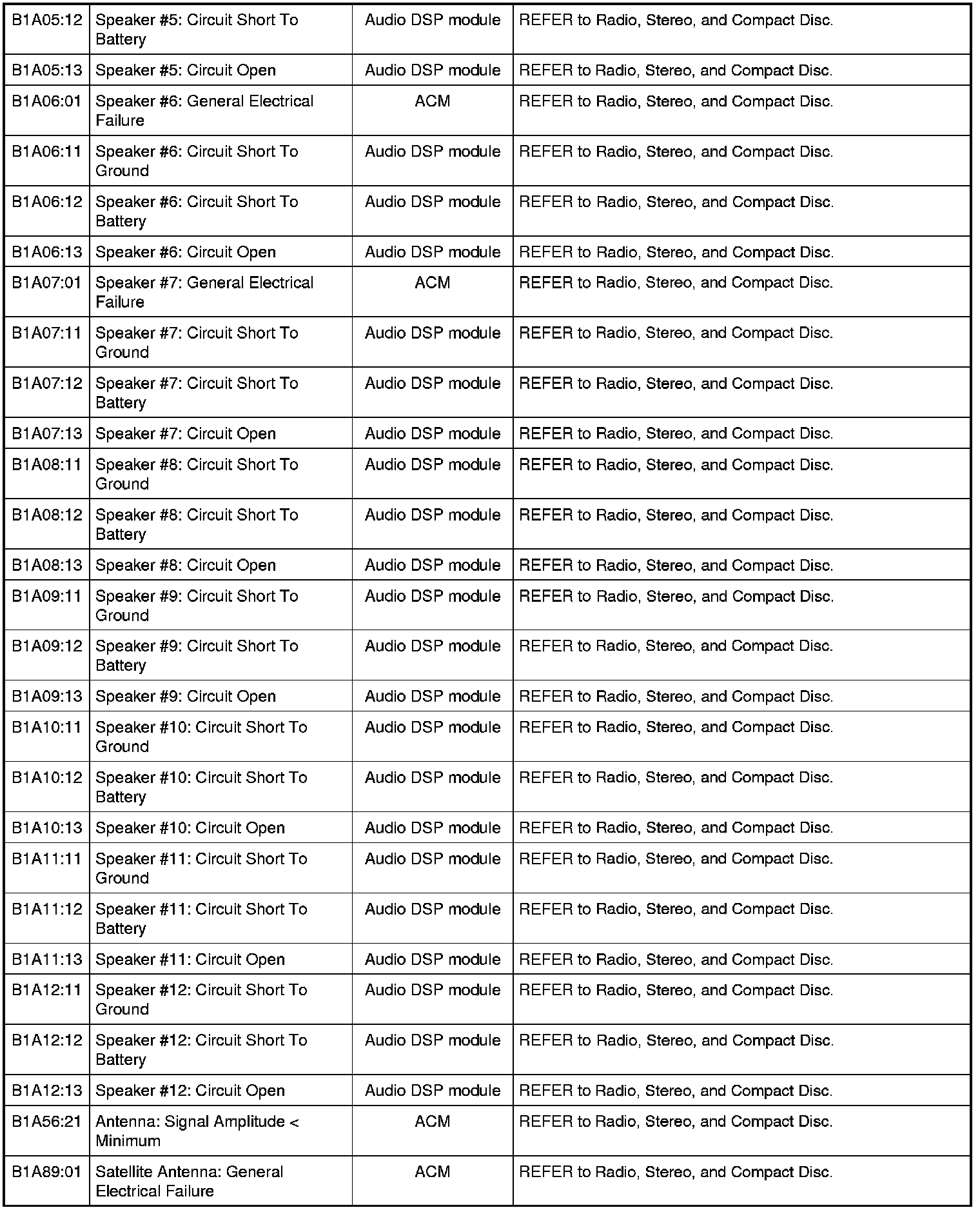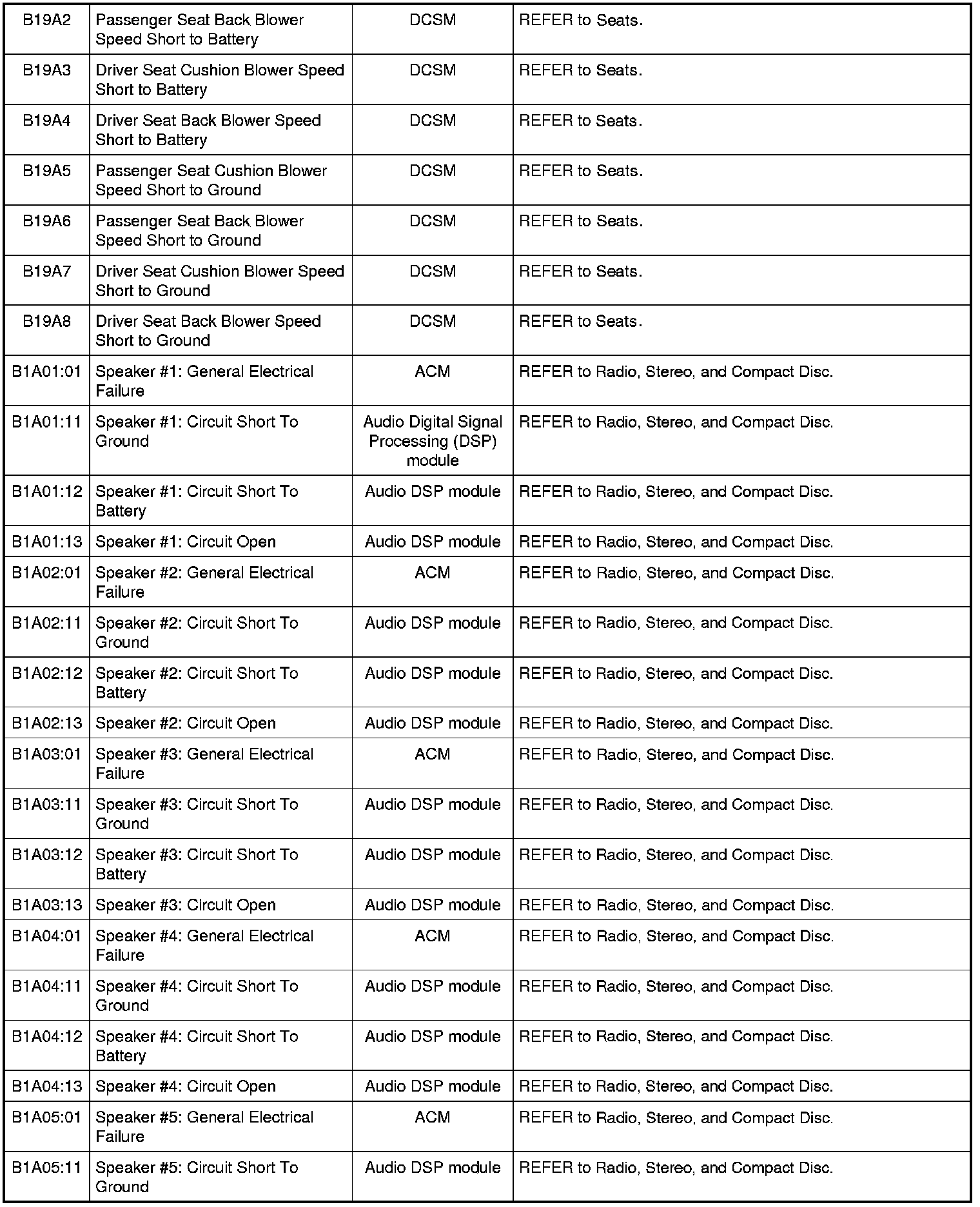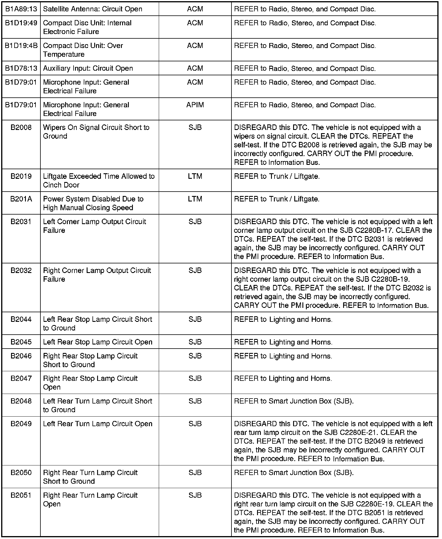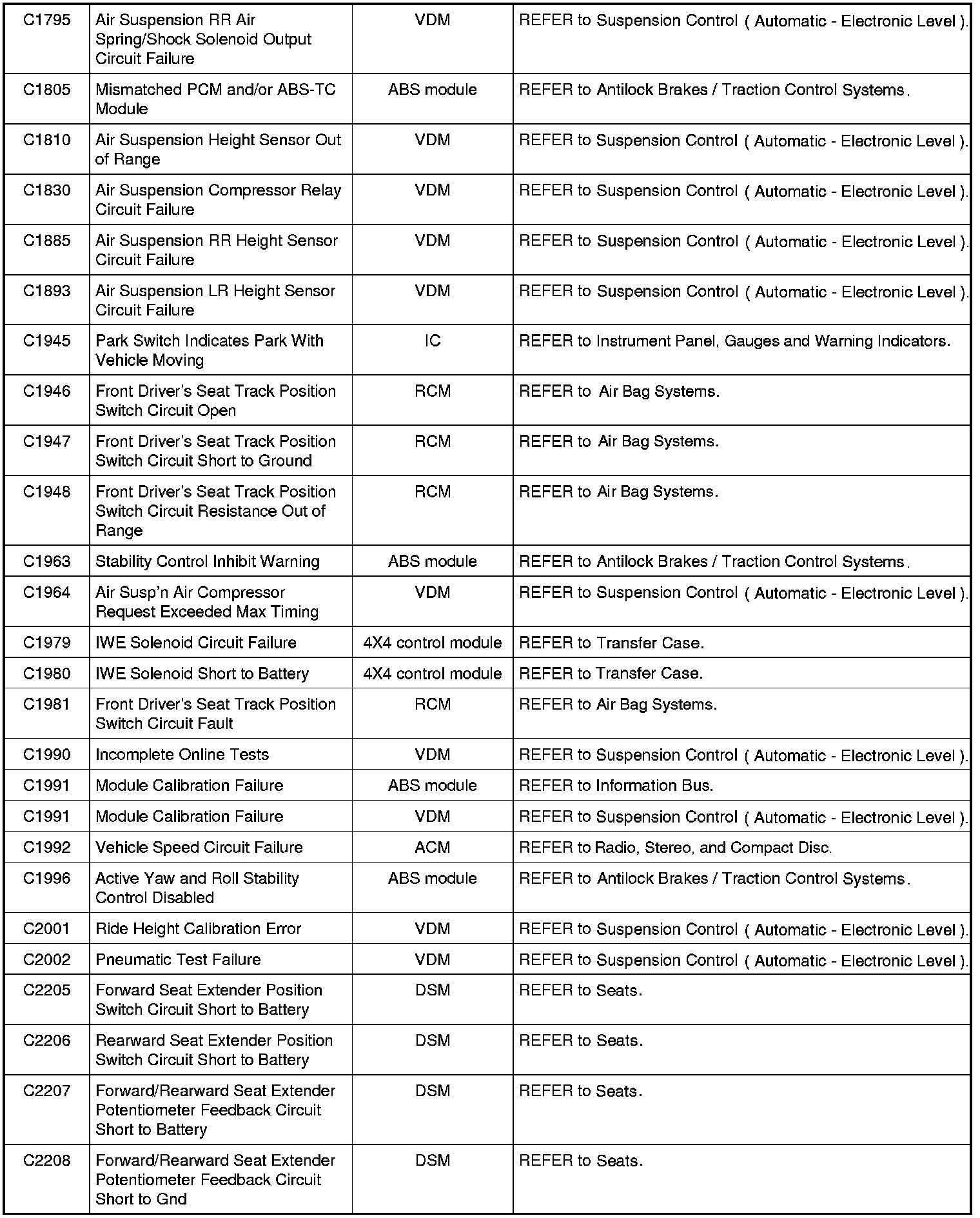 NOTE: Some of these modules utilize a 5-character DTC followed by a 2-character failure-type code. The failure-type code provides information about specific fault conditions such as opens, or shorts to ground. Continuous memory DTCs have an additional 2-character DTC status code suffix to assist in determining DTC history.