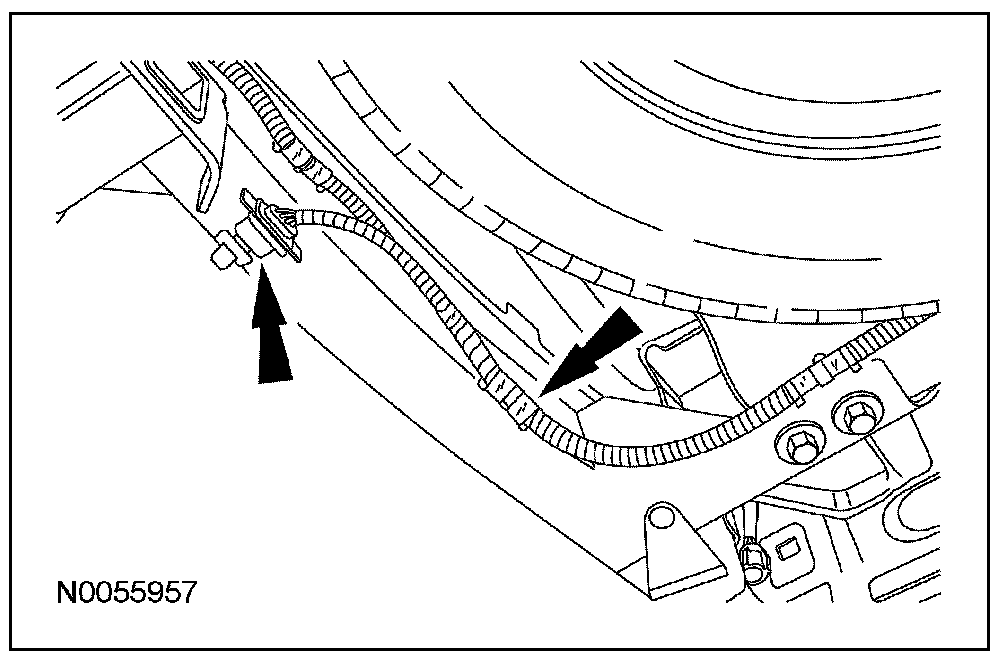 5. Remove the electrical connector from the trailer hitch and unclip the harness from the retainers on the frame.