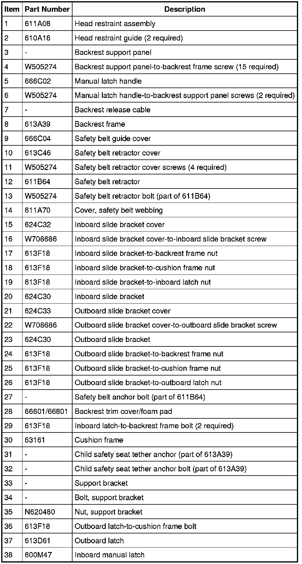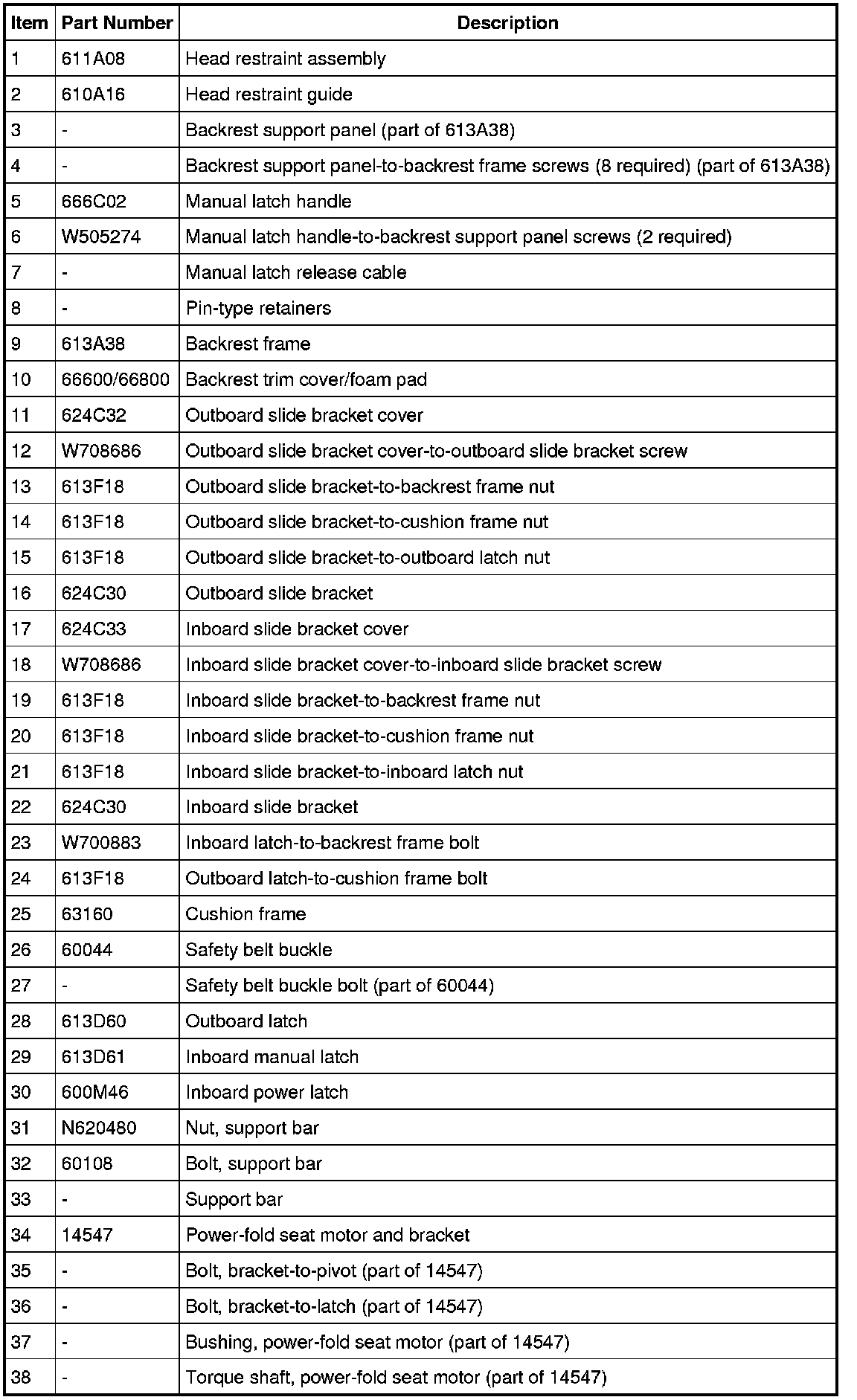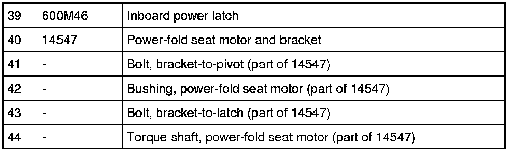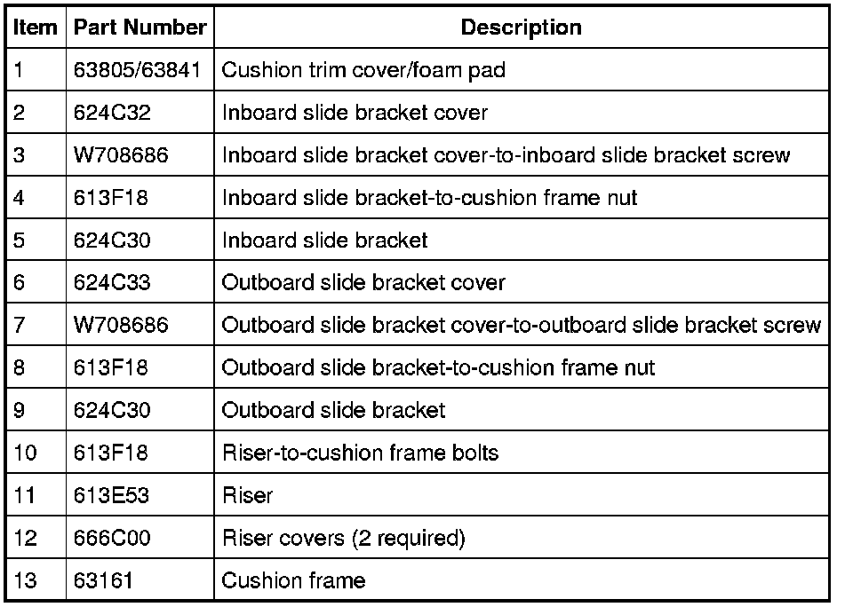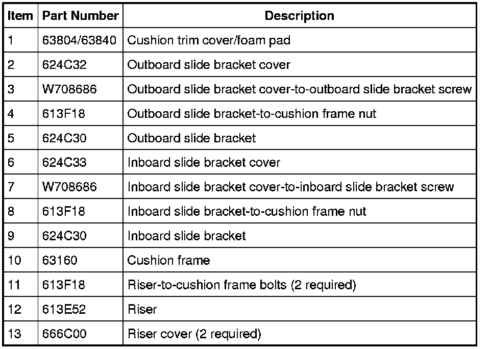 Seat - Exploded View, Third RowSeat Backrest - 40 percentSeat Cushion - 40 PercentSeat Backrest - 60 PercentSeat Cushion - 60 Percent 1.