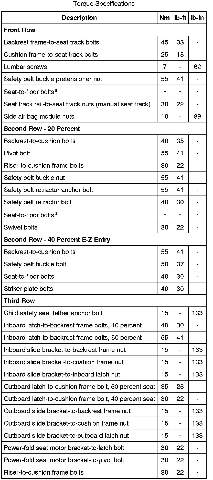 Seats: Specifications