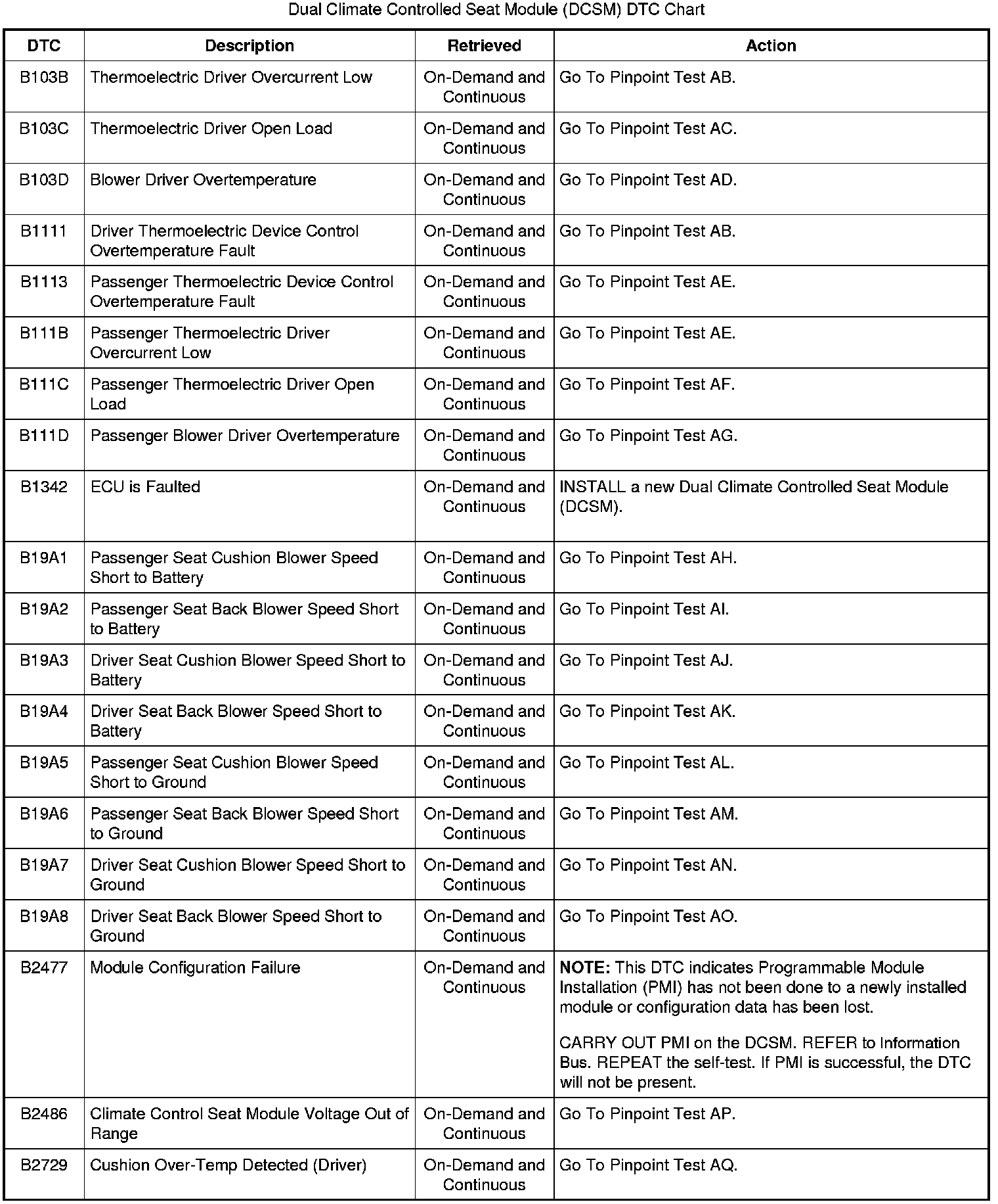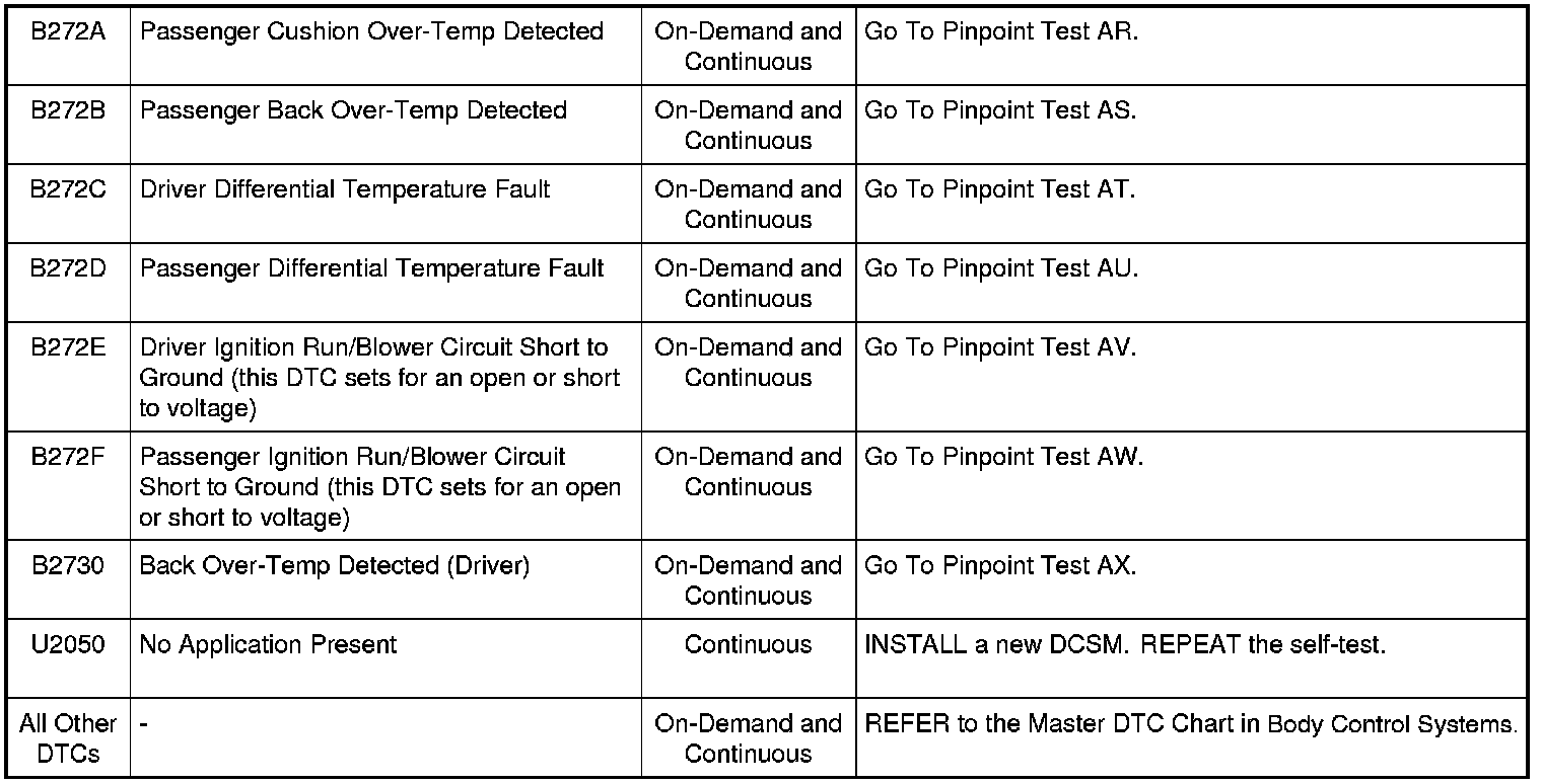 Dual Climate Controlled Seat Module (DCSM) DTC Chart