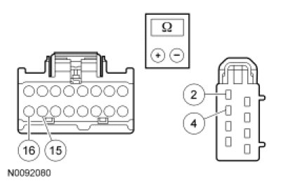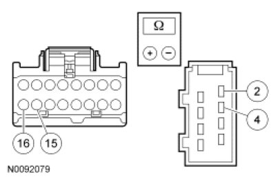 - NOTICE: The ohmmeter must be connected with the positive lead to pin 2 and the negative lead to pin 4 when measuring. Ohmmeter leads incorrectly connected will result in false readings and lead to incorrect identification of components that are not faulty.