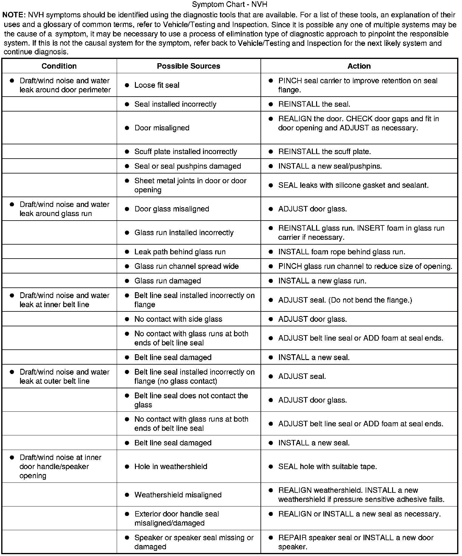 Symptom Chart - NVH
