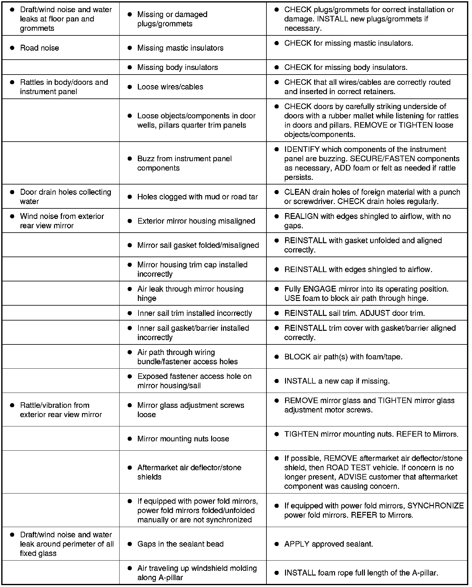 Symptom Chart - NVH (Part 1):
