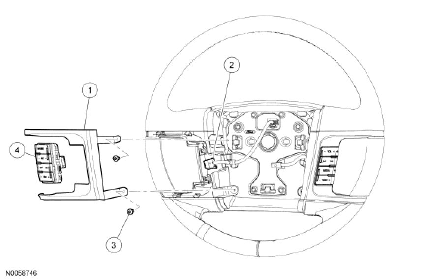 NOTE: Be careful not to allow the speed control switch electrical connector to fall back into the steering wheel.