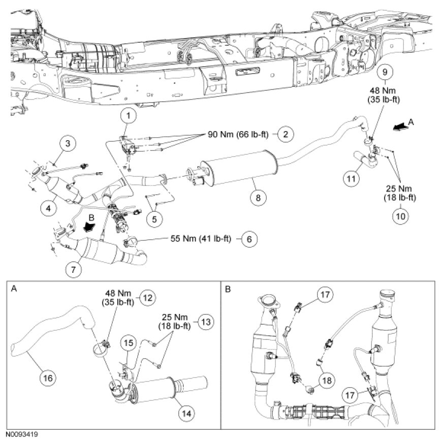 Exhaust System - Exploded ViewExpedition and NavigatorNOTE: Rear Wheel Drive (RWD) shown, Four-Wheel Drive (4WD) similar.