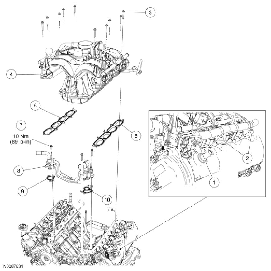 1. NOTICE: If the engine is repaired or replaced because of upper engine failure, typically including valve or piston damage, check the intake manifold for metal debris. If metal debris is found, install a new intake manifold. Failure to follow these instructions can result in engine damage.