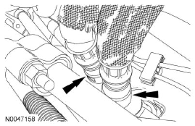 23. Connect the RH KS electrical connector and the heater coolant hose.