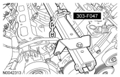 1. Using a suitable floor crane, position the engine assembly into the vehicle.