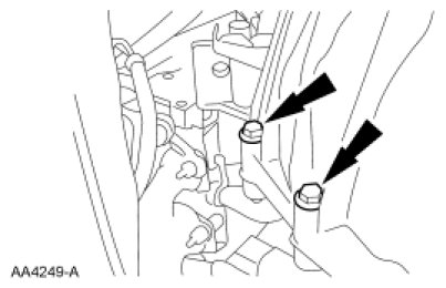 6. Tighten the 2 transmission insulator and retainer nuts.