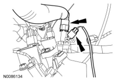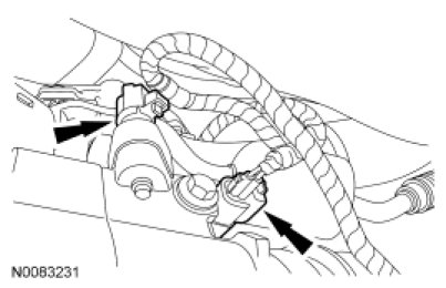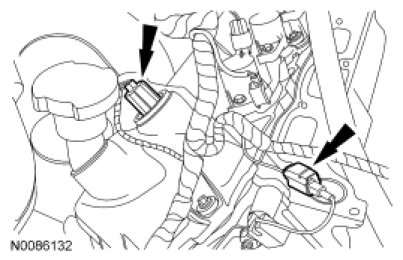 25. Connect the RH VCT solenoid and the RH radio ignition interference capacitor electrical connectors.
