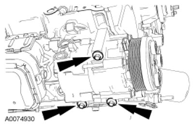 10. Position the A/C compressor and install the 3 bolts.