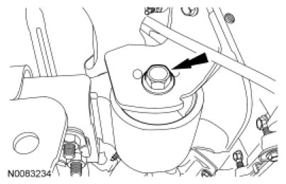 2. NOTICE: Only use hand tools when tightening the engine support insulator through bolt or the engine support insulator may be damaged.