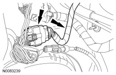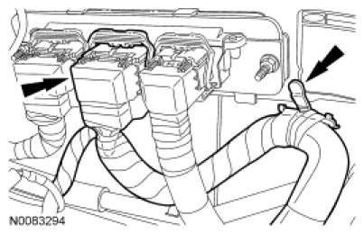 28. Connect the PCM electrical connector and the engine wiring harness retainer.