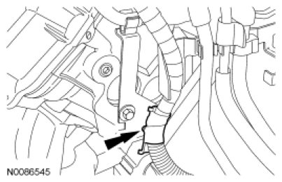 18. Connect the transmission wiring harness retainer to the intake manifold vacuum tube support bracket.