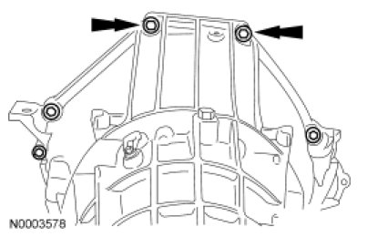 5. NOTE: The upper 2 transmission-to-engine bolts will be installed later.