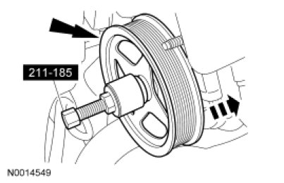 31. Using the Power Steering Pump Pulley Installer, install the power steering pump pulley.